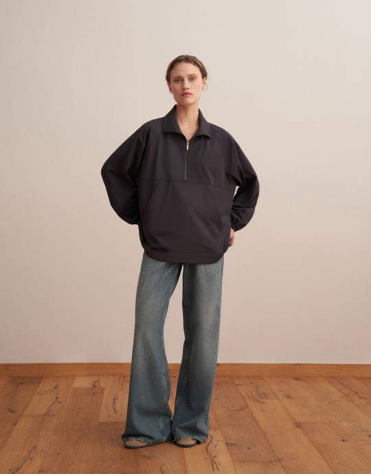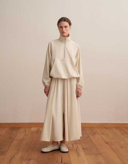 Bayan Ekru Polo Yaka Sweatshirt | KK Design