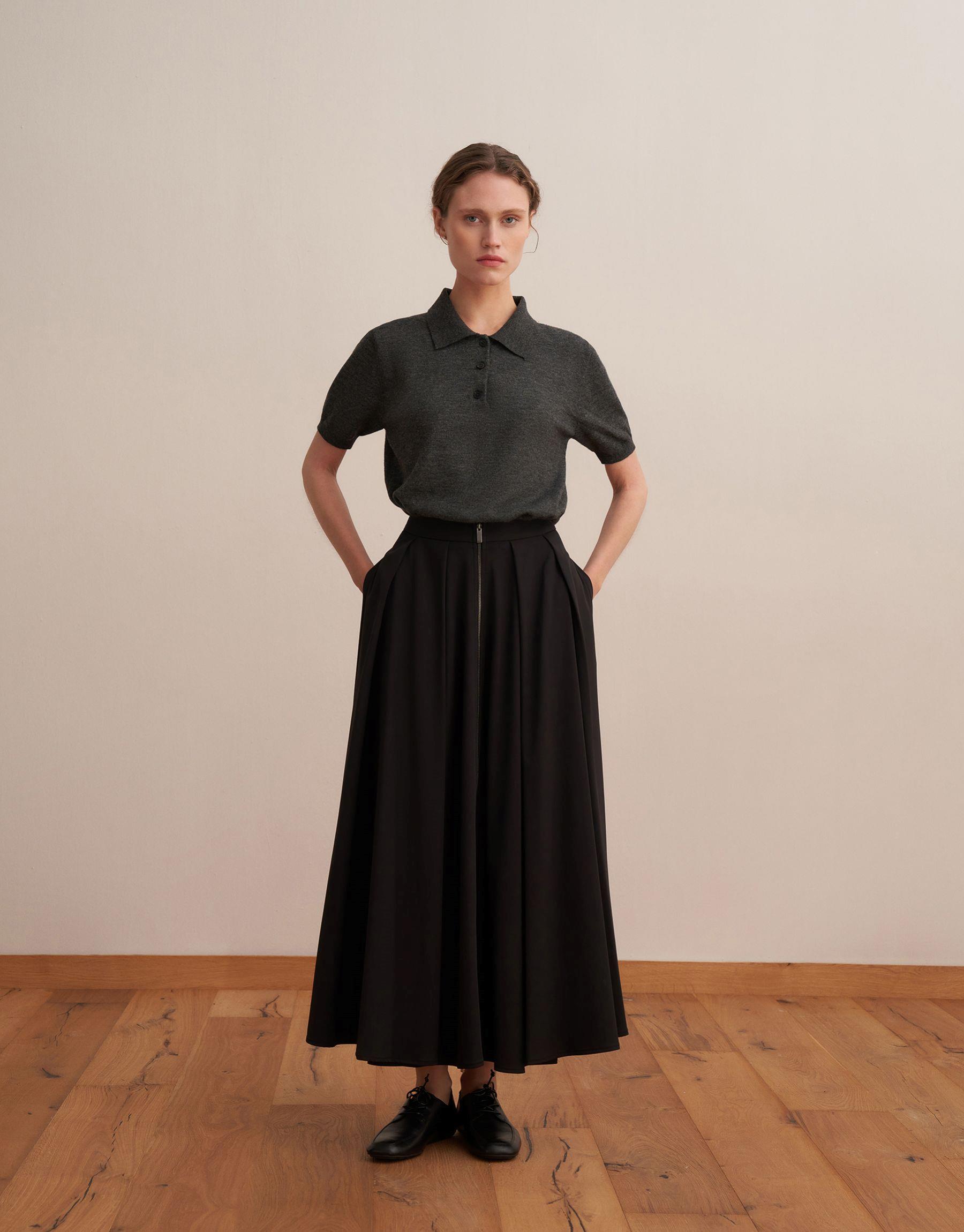 Fermuarlı Pileli Teknik Etek Siyah