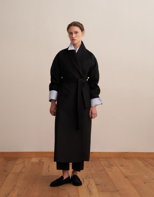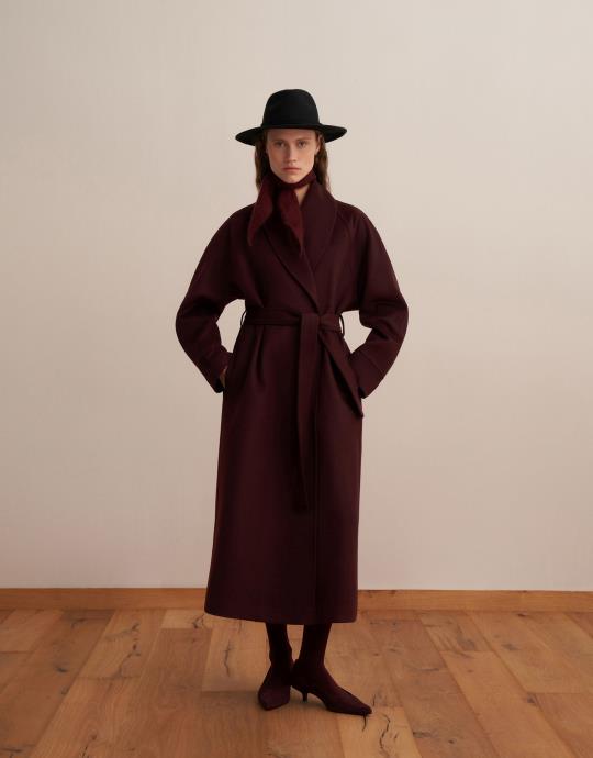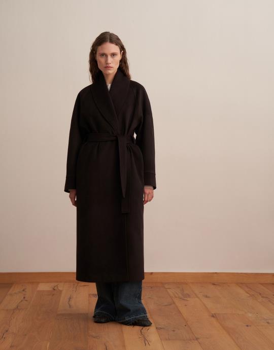 Bayan Sütlü Kahve Şal Yaka Yün Palto | KK Design